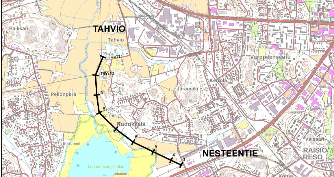 Caruna Oy omistaa Raision kaupungissa sijaitsevan Nesteentie – Tahvio 110 kV voimajohdon. Johdolle on 17. kesäkuuta 2022 haettu Maanmittauslaitokselta lupaa, jonka perusteella voimajohtoalueen vaatimat käyttöoikeudet on mahdollista perustaa kiinteän omaisuuden ja erityisten oikeuksien lunastuksesta annetussa laissa (29.7.1977/603) säädetyllä tavalla. Lunastuslupahakemusasiakirjat ovat nähtävillä 27.6.-5.8.2022 välisen ajan Raision kaupungin verkkosivuilla.